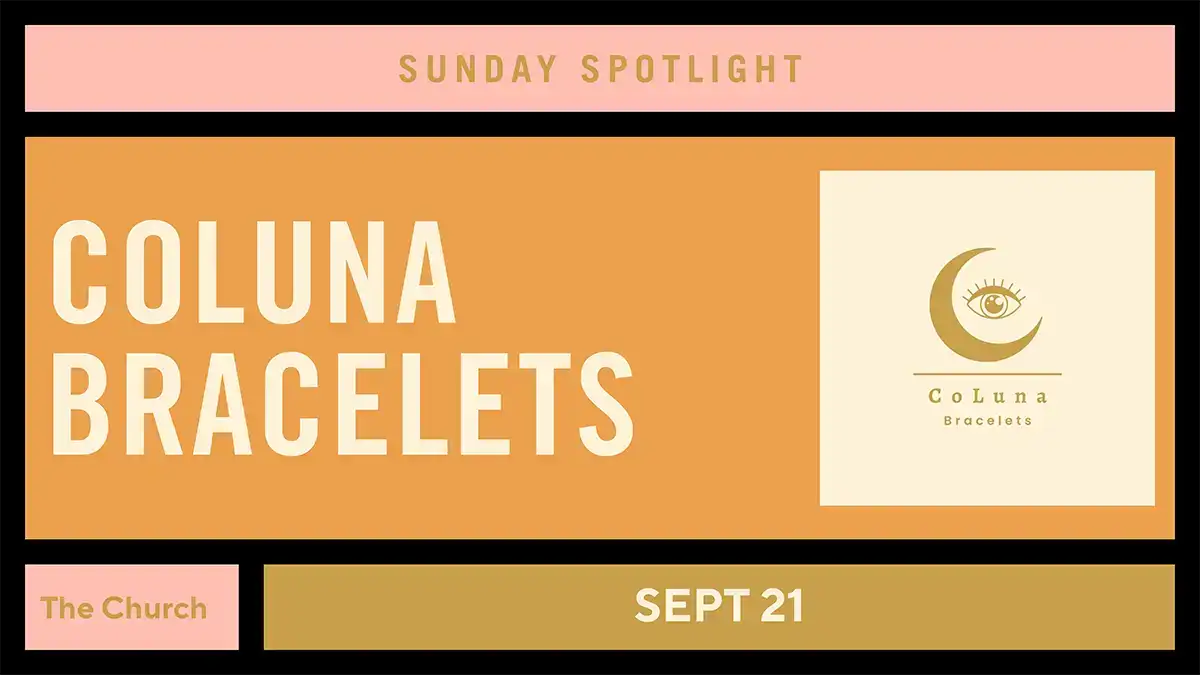 Sep 21 CoLuna Sunday, September 21st, 2025|11:30 AM - 6:00 PM Join us every Sunday at the Church to shop with local vendors from 11:30 AM to 6:00 PM.